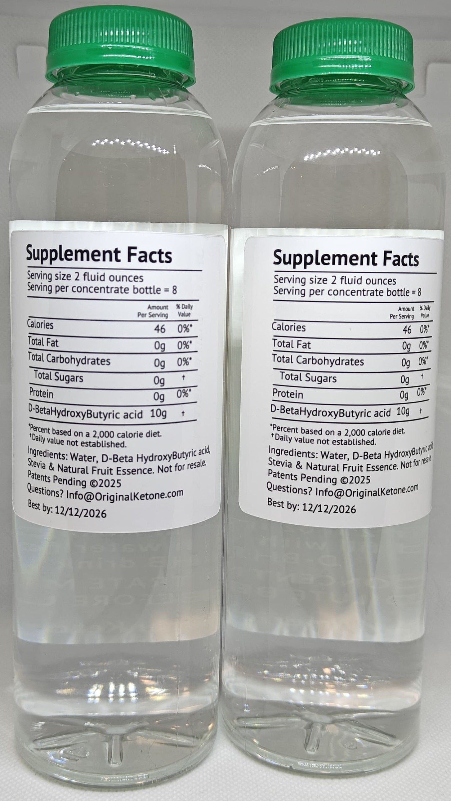 Each Original Ketone® Concentrate bottle contains 80g BioIdentical D-BHB ketone concentrate with stevia and fruit flavors. Original Ketone® contains no salts, no ester, no alcohol and is not a ketone precursor blend.